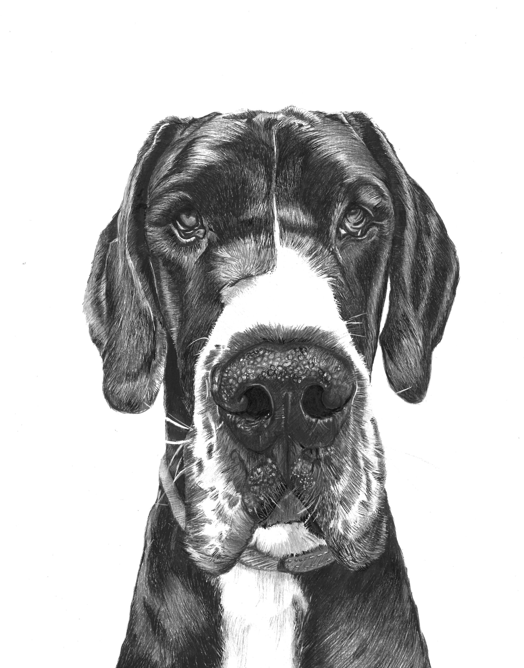 I draw the head and shoulders of your pet which allows me to capture all the characteristics and expressions you love about them.