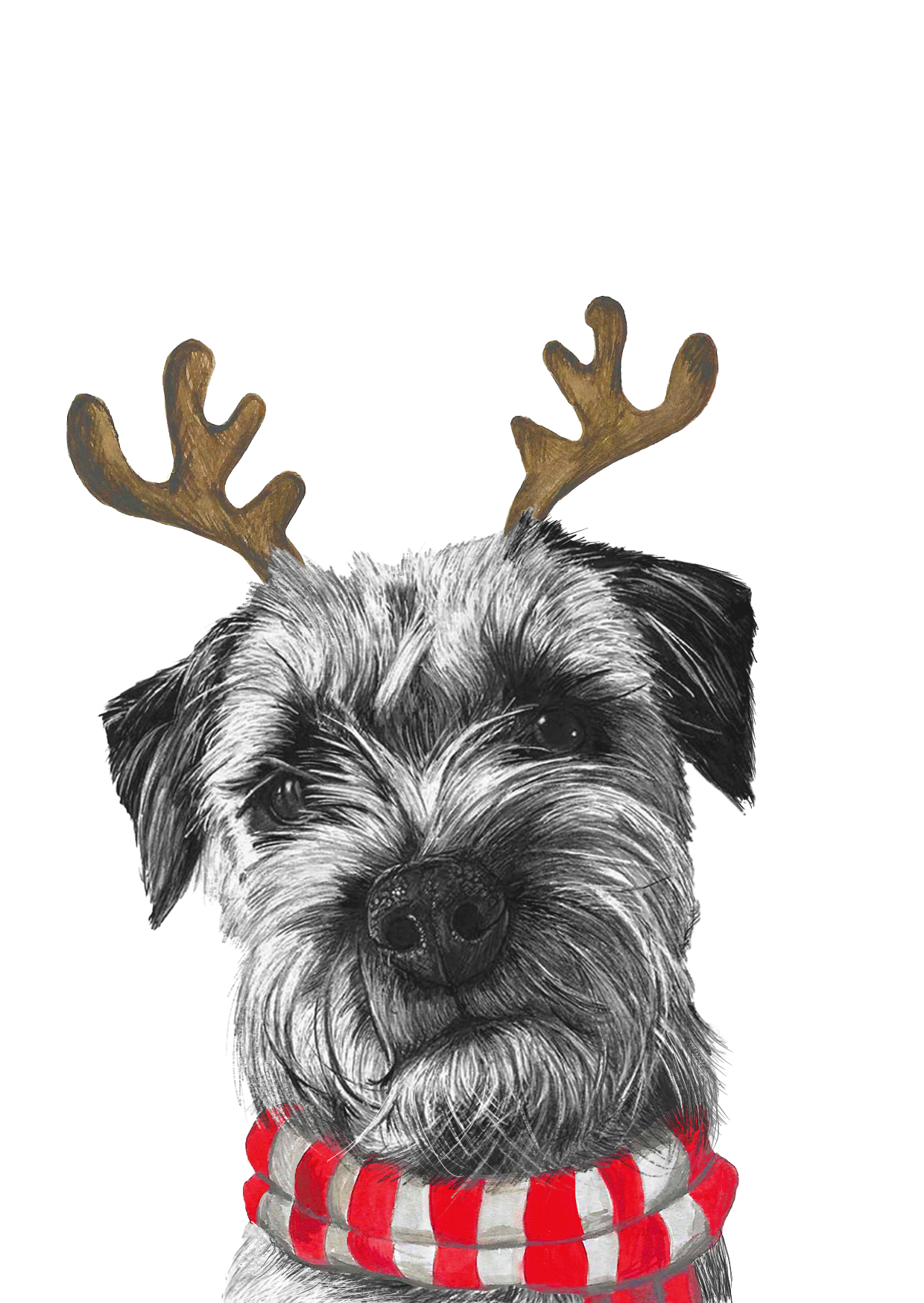 Border Terrier with Reindeer Ears Christmas Card
