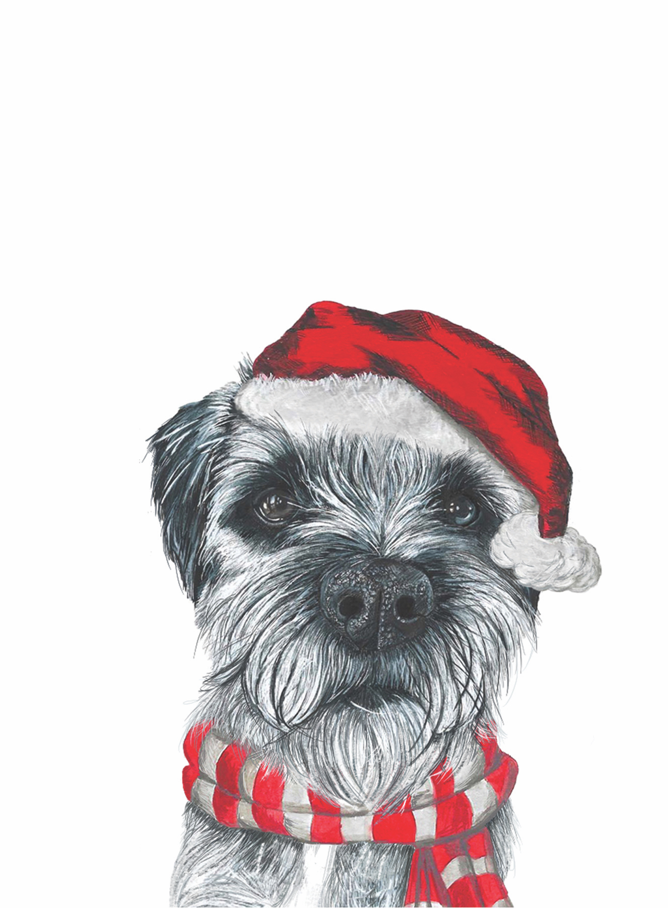 Art cards professionally printed with high quality inks on premium white card with brown envelope and recyclable card clasp stickers. The design is from an original black and white pen and ink drawing with the addition of a Santa hat by Debra Mhairi. This card features a Border Terrier. Excellent quality and printed on premium […]