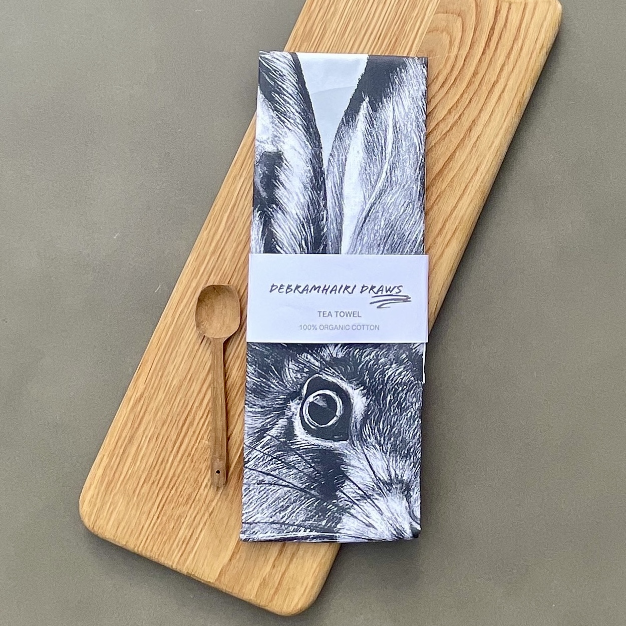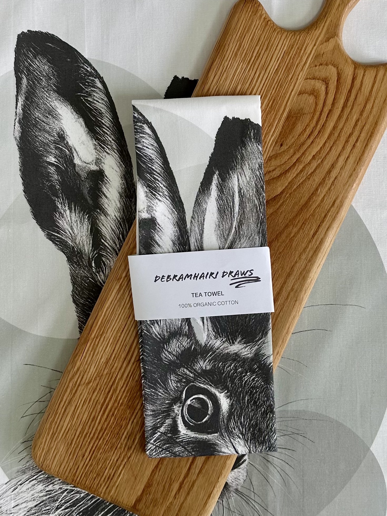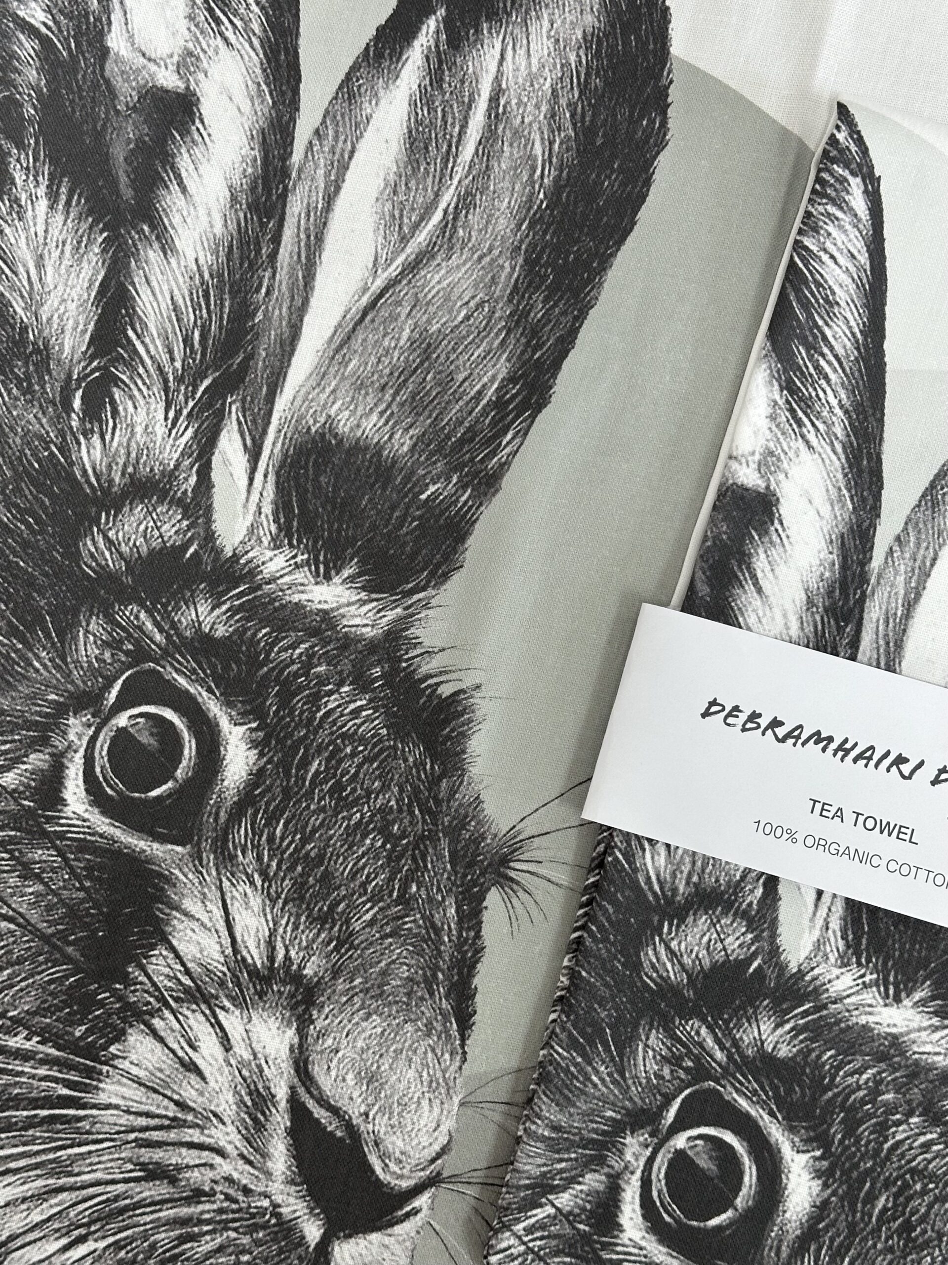 A tea towel featuring a Hare, a perfect addition to any kitchen.