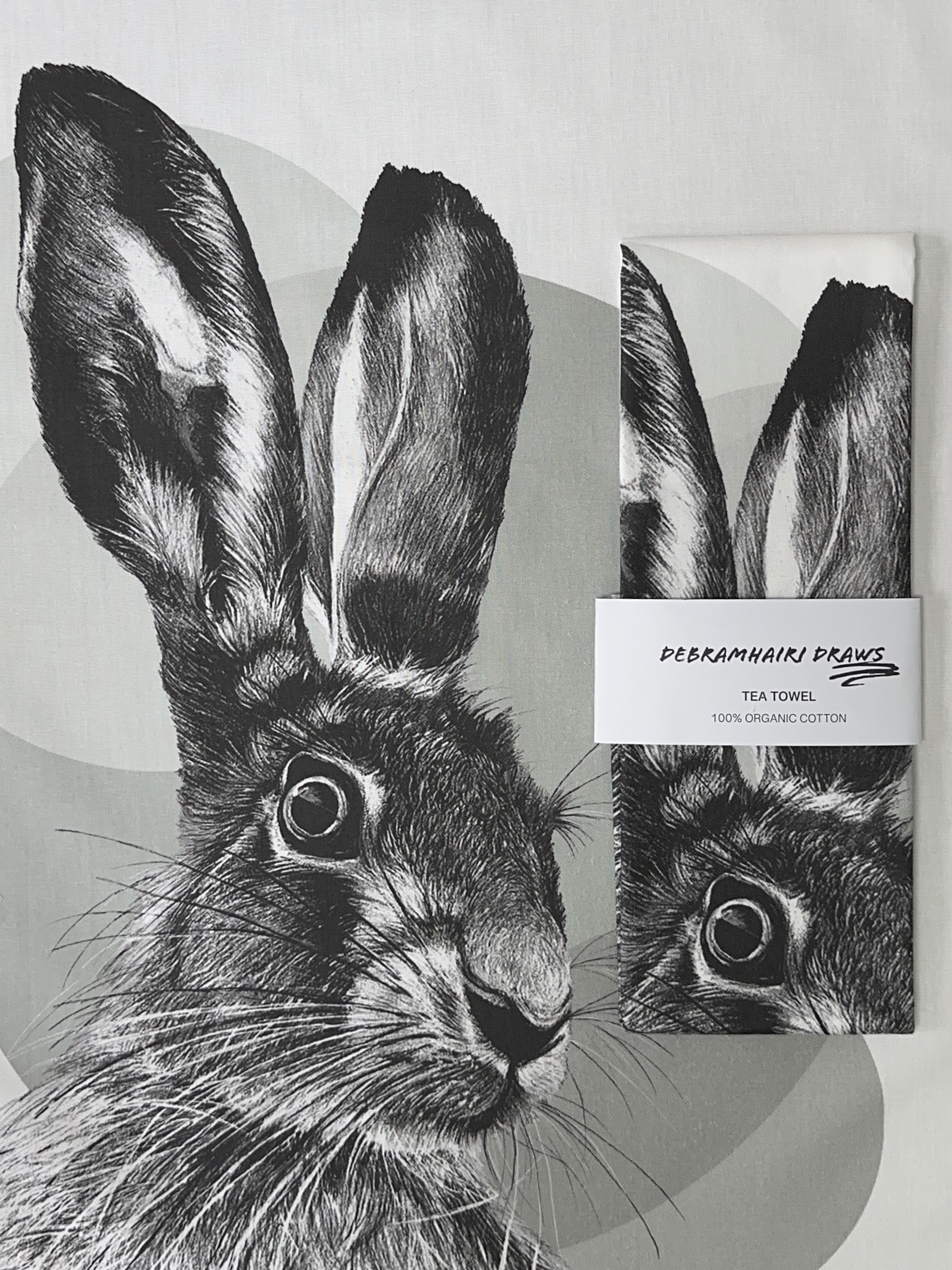 A charming Hare print tea towel for nature-lovers.
