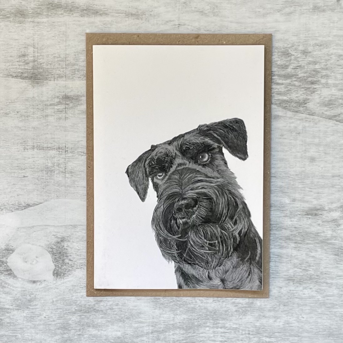 A delightful blank card featuring a lovable Miniature Schnauzer — perfect for any Schnauzer fan.