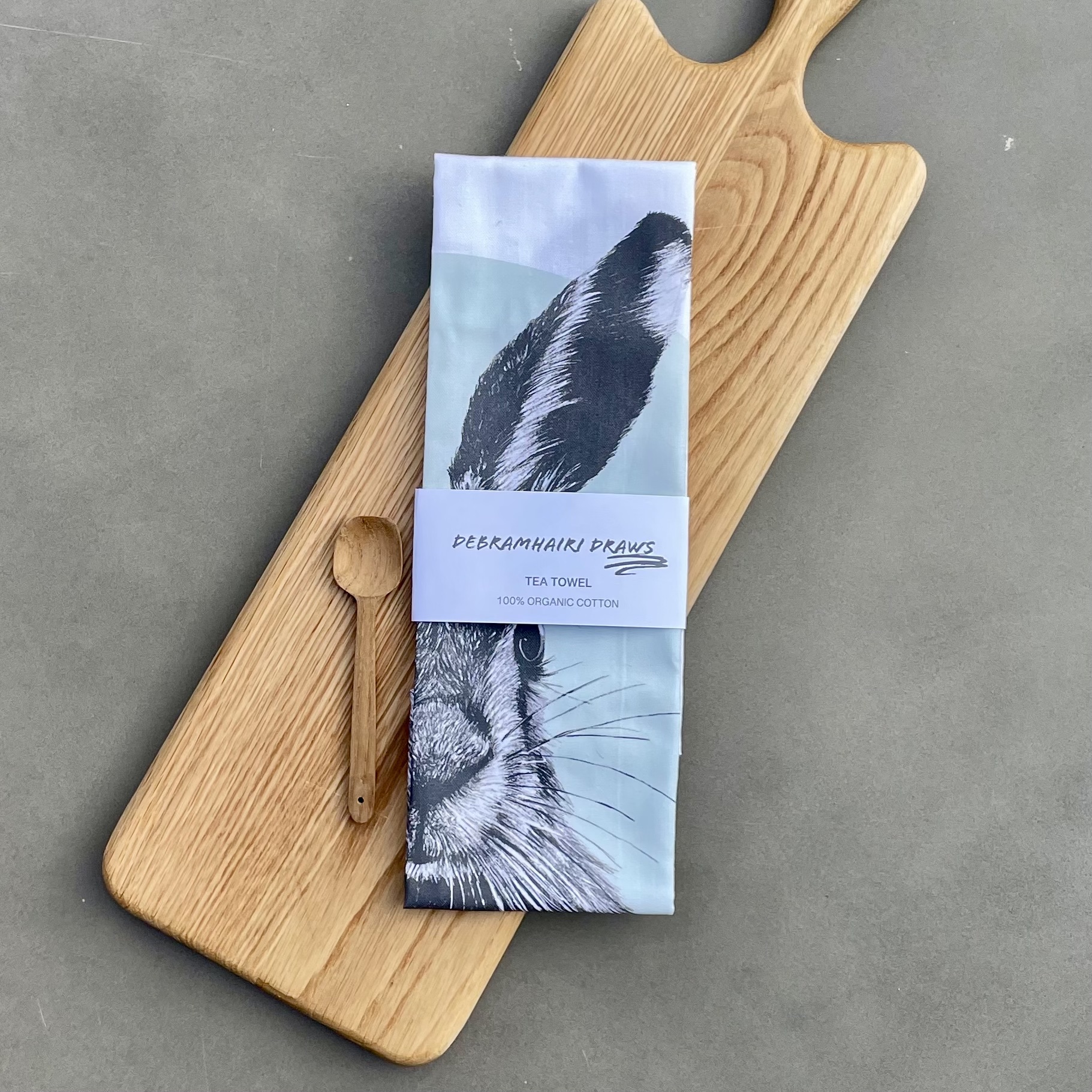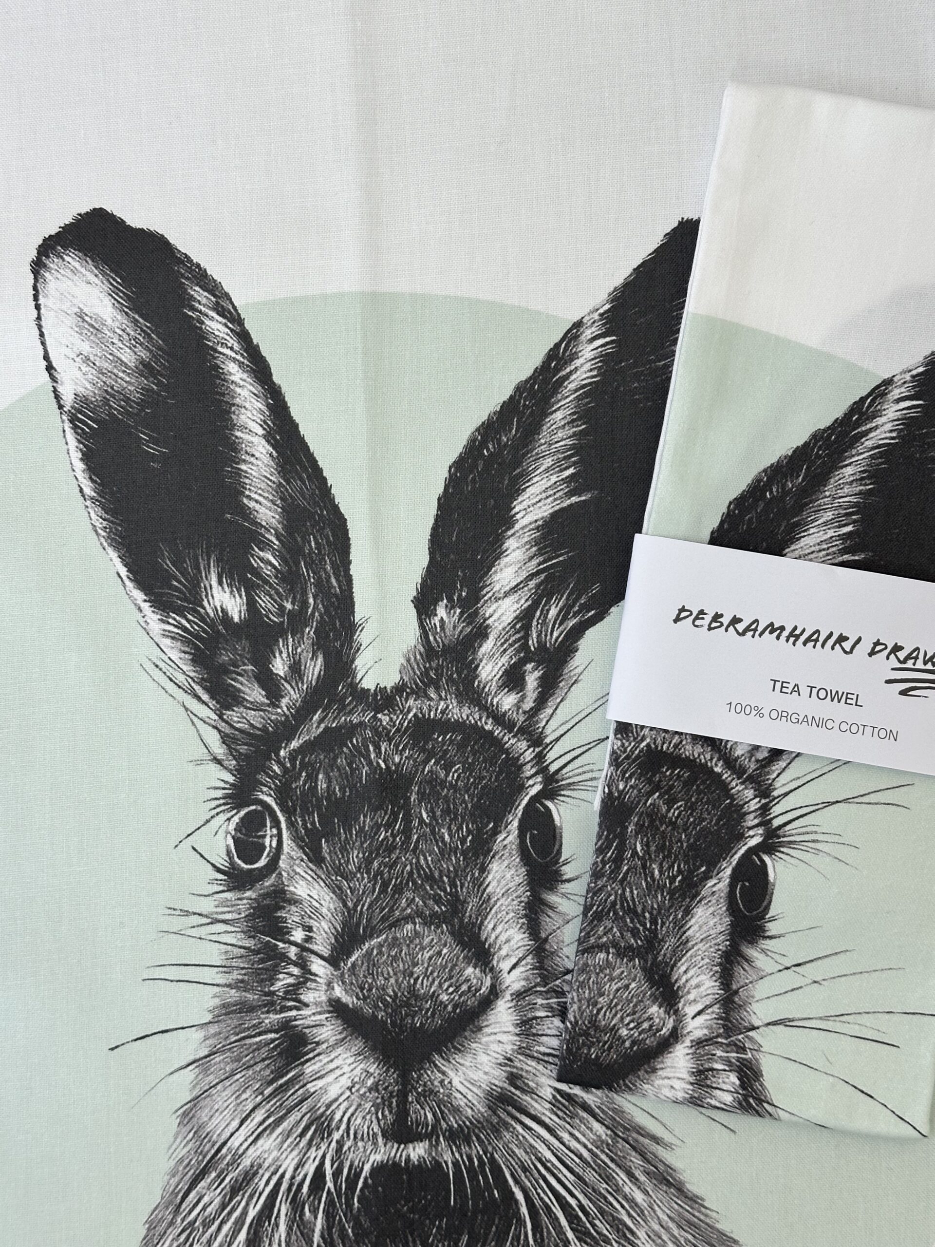 A tea towel featuring a Hare, a perfect addition to any kitchen.